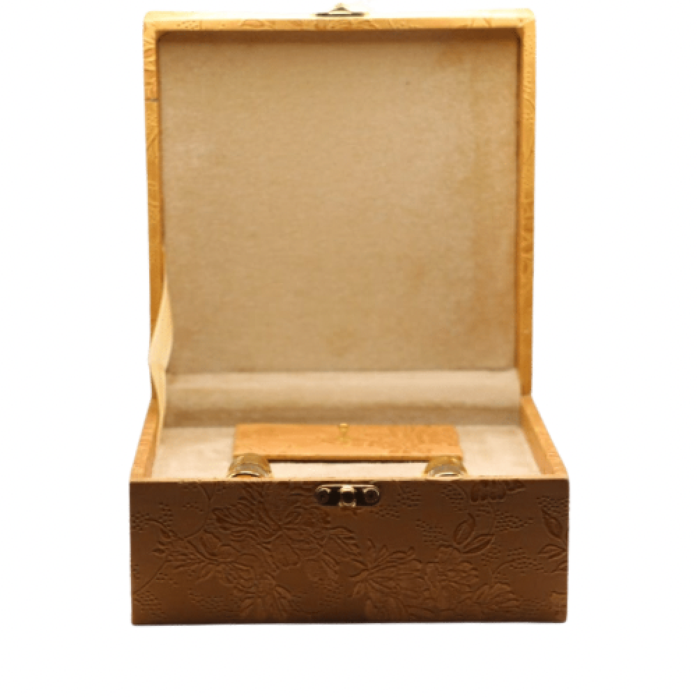 صندوق خشبي بلون بيج من الخارج وزخرفة ورقية ومخمل من الداخل