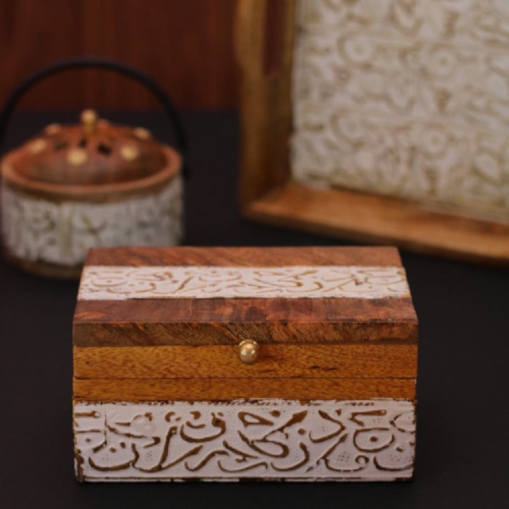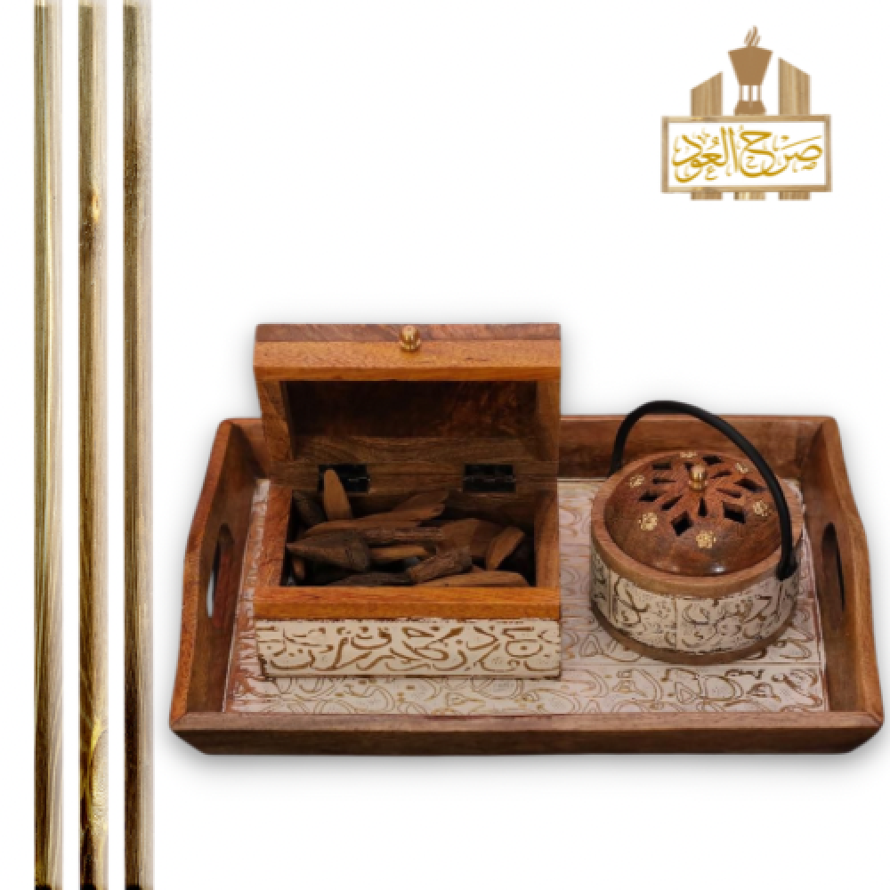 طقم مكون من مبخرة وصينية تقديم وصندوق لحفظ العود والبخور